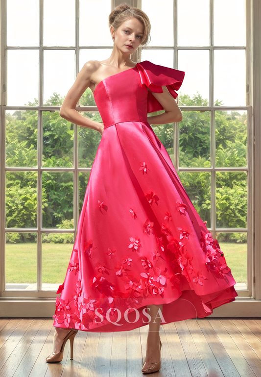 A Line One Shoulder Satin Elegant Cocktail Dress Long Mother of the Bride Dress