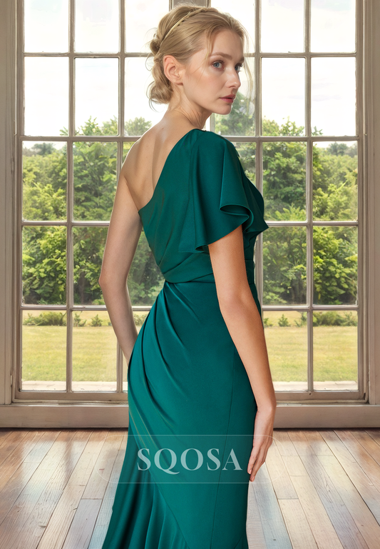 Sheath One Shoulder Pleats Mermaid Cocktail Dress for Wedding Long Mother of the Bride Dress