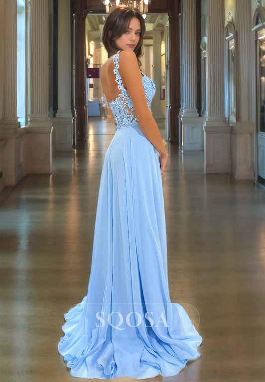 A Line Sweetheart Lace Chiffon Long Formal Evening Dress Floor Length