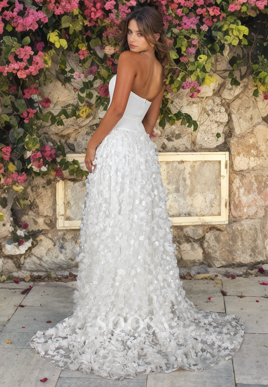 Elegant Tube Top Sleeveless High Split Beach Gowns with Train Off-Shoulder A-Line Boho Wedding Dress