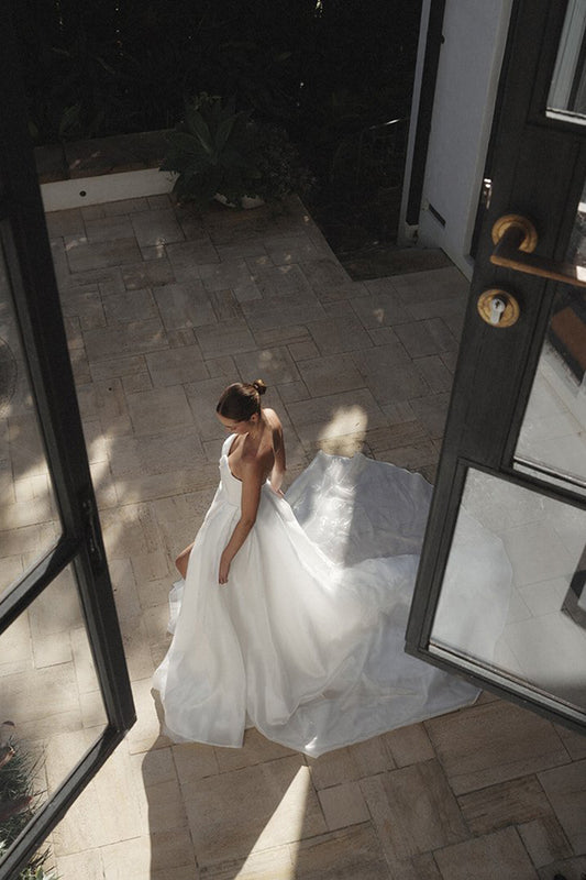 Chic Scoop Spaghetti Straps Simple Bohemian Wedding Dress Bridal Gown QW2111