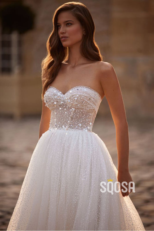 A-line Sweetheart Sequins Beach Wedding Dress QW2302