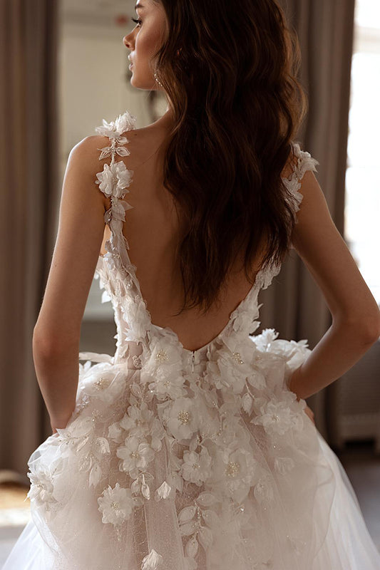 A-line V-Neck 3D Appliques Bohemian Wedding Dress Besch Bridal Gown QW2461