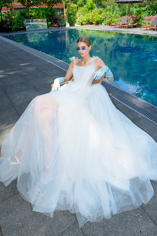 Spaghetti Straps Lace Appliques Sparkly Bohemian Wedding Dress Bridal Gown QW0956