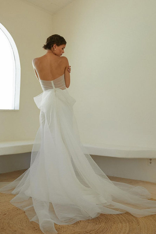 Mermaid Wedding Dress Sweetheart Satin Pleats Simple Bride Dress with Detachable Skirt QW2311