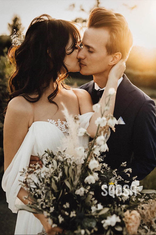 A-Line Off-the-Shoulder Appliques Bohemain Wedding Dress Bridal Gowns QW0924