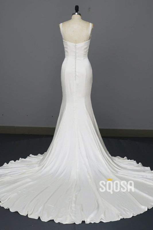 Sexy V-neck Spaghetti Straps Simple Mermaid Wedding Dress QW2372