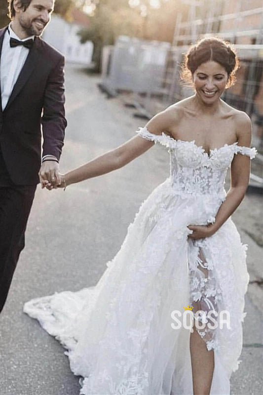 Exquisite Lace Wedding Dress Unique Off-Shoulder Bohemian Wedding Dress QW2410