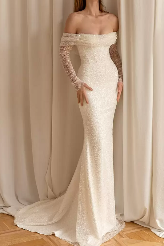 Unique Off Shoulder Long Sleeves Mermaid Wedding Dress QW2622