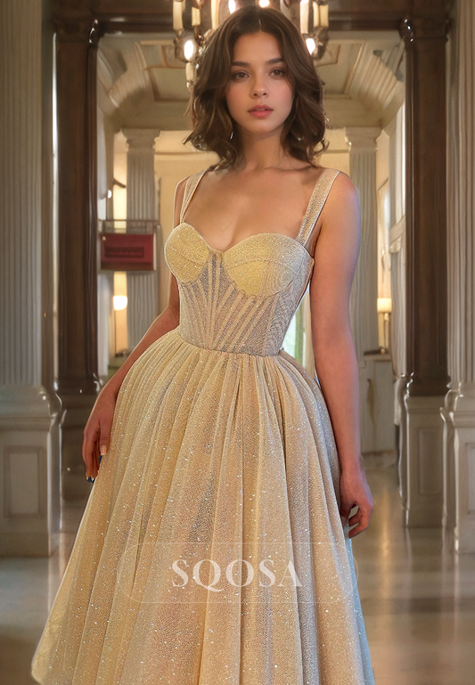 A Line Spaghetti Straps Sparkly Prom Dress Long Party Gown