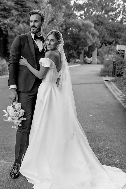 Unique Off-Shoulder Ivory Satin Simple A-line Wedding Dress QW2541