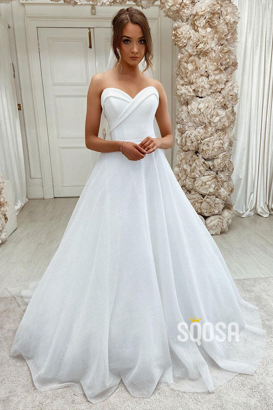 A Line Sweetheart Pearls Princess Wedding Dress QW2636