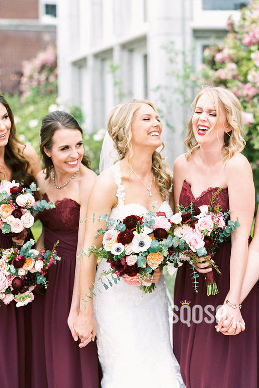 A-line Sweetheart Burgundy Chiffon Long Bridesmaid Dress Floor Length QB2092
