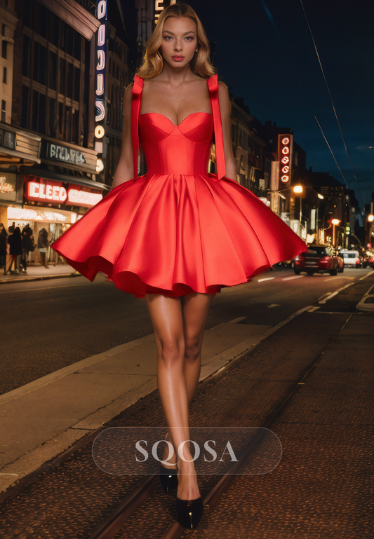 A Line Sweetheart Cute Bow Short Homecoming Dress Graduation Dress
