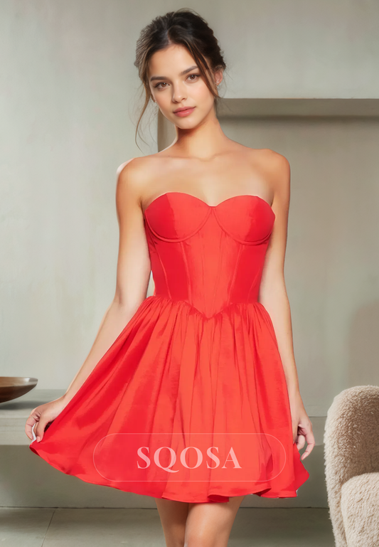 A Line Sweetheart Red Homecoming Dress Short Prom Graduation Dress