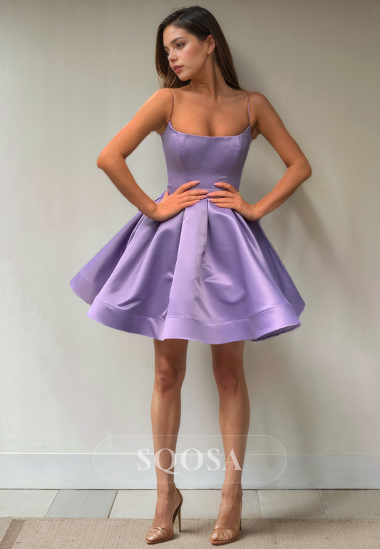 Satin A-Line Square Spaghetti Straps Empire Party/Homecoming Dress QS2524