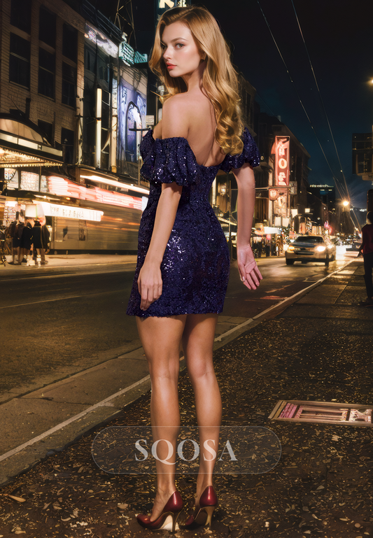 Sheath Off Shoulder Velvet Beads Short Homecoming Dress Tight Graduation Party Dress