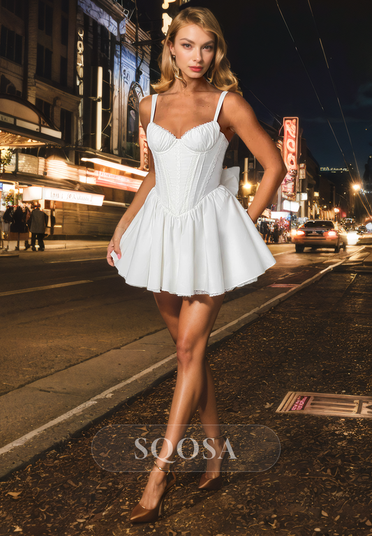 Spaghetti Straps Sweetheart White Cute Homecoming Dress with Pockets Short Graduation Dress