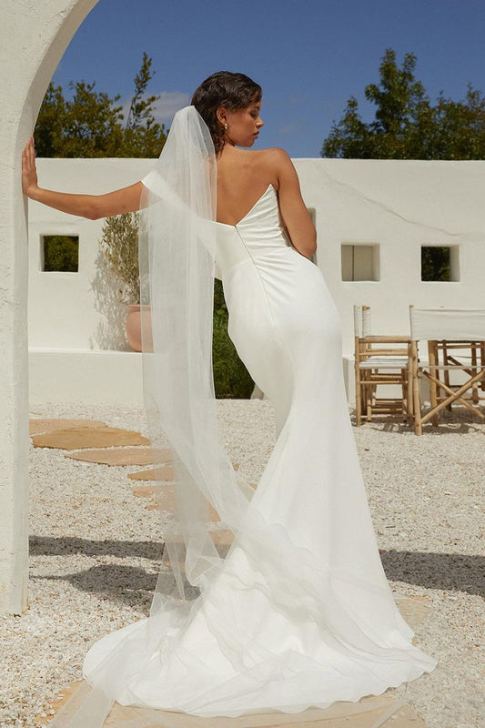 Sheath/Column Strapless Ivory Satin Simple Wedding Dress with Slit QW2176
