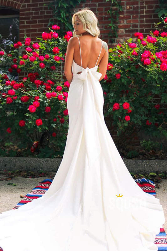 Sexy V-neck Spaghetti Straps Simple Mermaid Wedding Dress QW2372