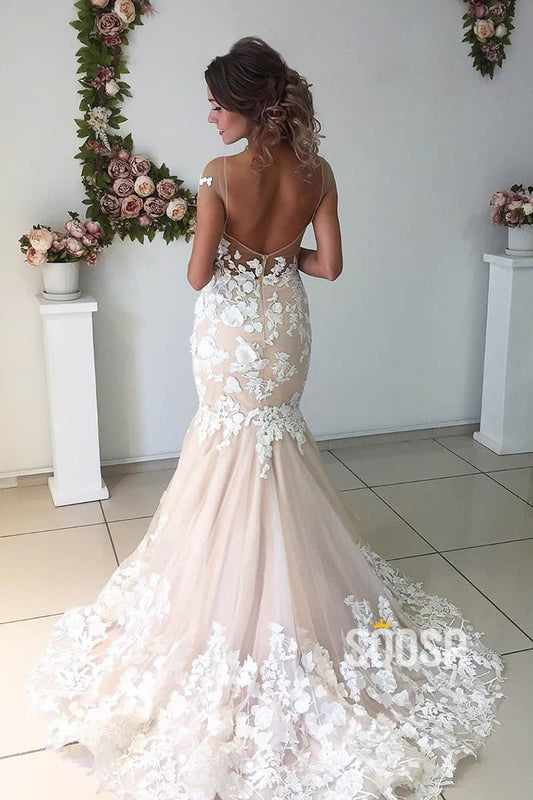 Mermaid Wedding Dress Exquisite Lace Appliques Rustic Wedding Dress QW2374