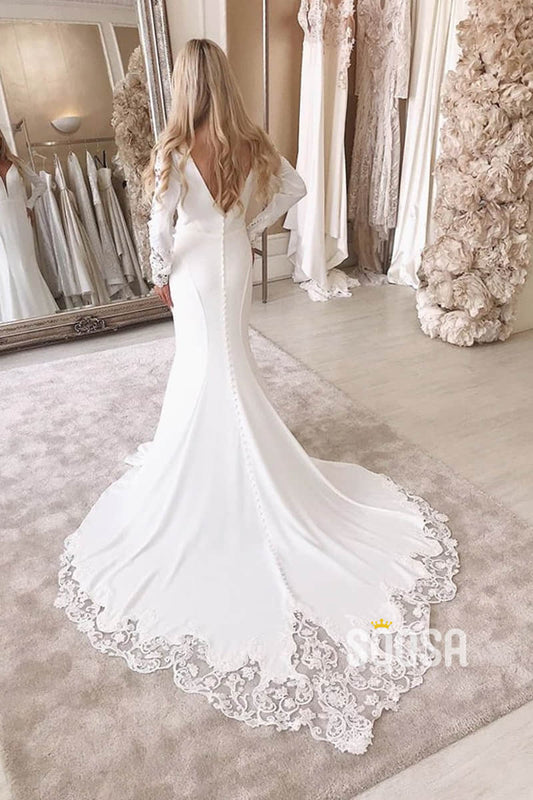Mermaid/Trumpet Wedding Dress V-neck Illusion Long Sleeves Lace Wedding Gown QW2257