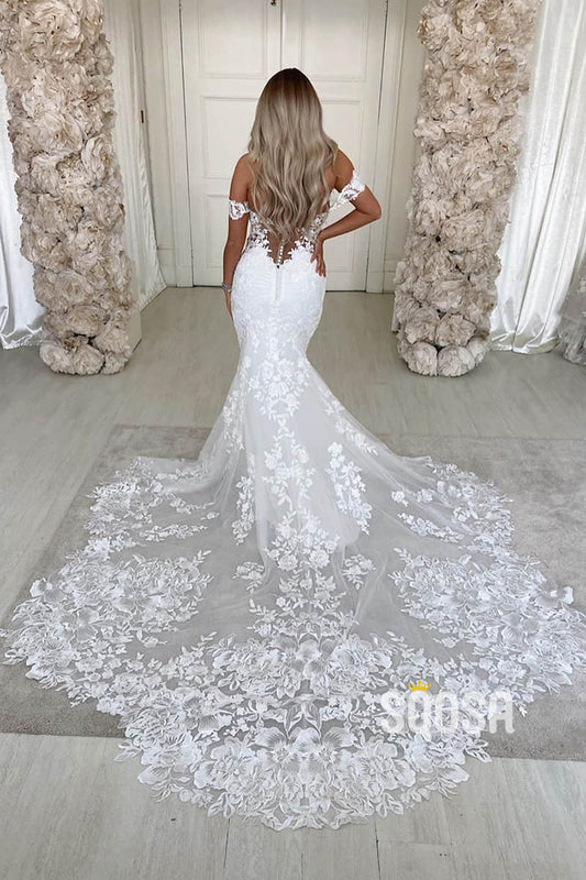 Off-the-Shoulder 3D Lace Mermaid Wedding Dress Bridal Gowns QW0893