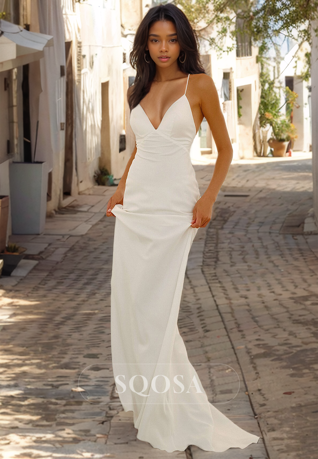 Experience the perfect combination of elegance and bohemian charm with our V-Neck Spaghetti Straps Boho Wedding Dress. The off-shoulder design adds a touch of romance, while the mermaid silhouette accentuates your curves. Ideal for a beach wedding, this gown will make you feel like a goddess on your special day.