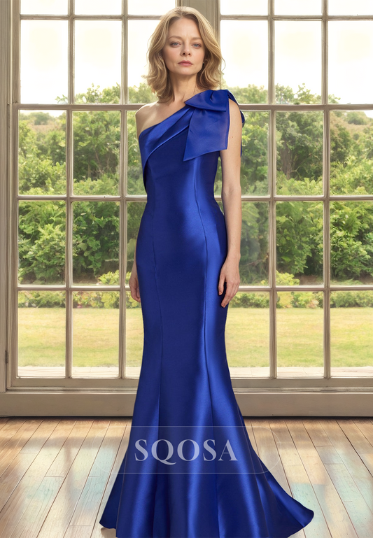 Asymmetrical-Neck Sleeveless Mermaid Mother of the Bride Dress One-Strap Floor-Length Cocktail Gowns