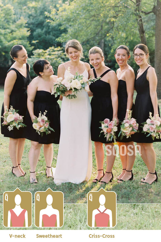 Black Chiffon Sweetheart A-Line Short Bridesmaid Dress QB0826