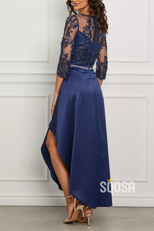 Illusion Round Applique Mother of the Bride Dress Elegant Evening Gown QM3227