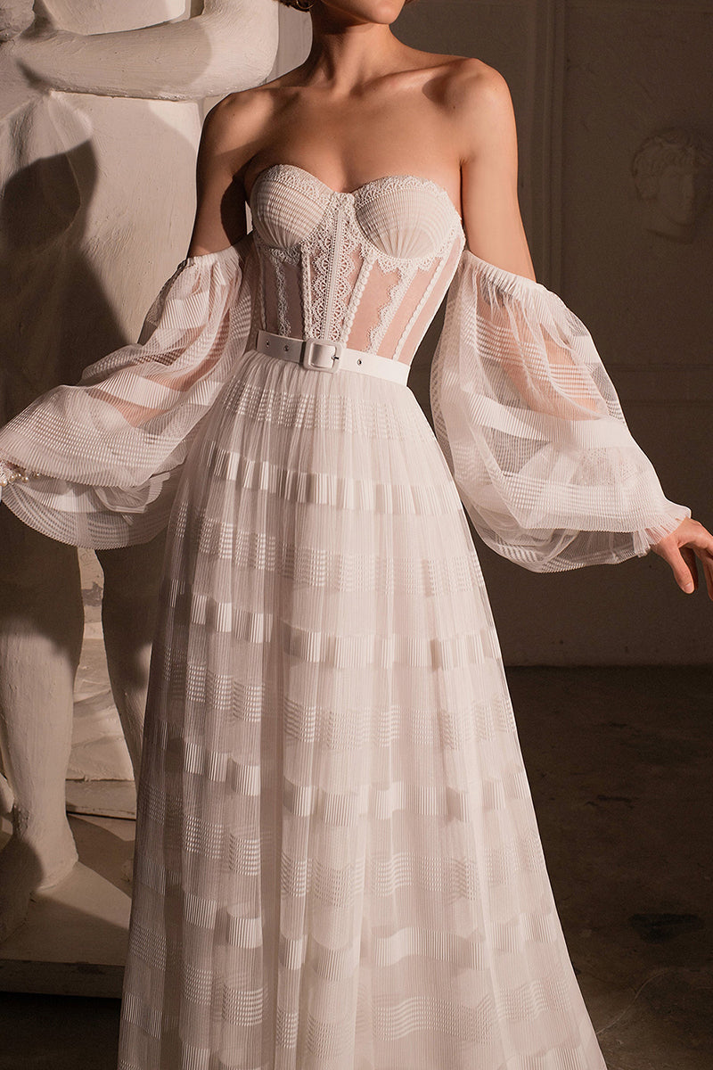 A line Sweetheart Long Sleeves Lace Boho Wedding Dress QW2131