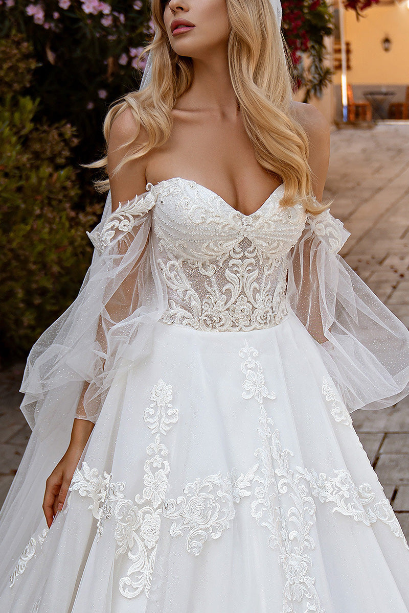 Ball Gown Sweetheart Lace Appliques Rustic Wedding Dress with Long Sleeves QW2195