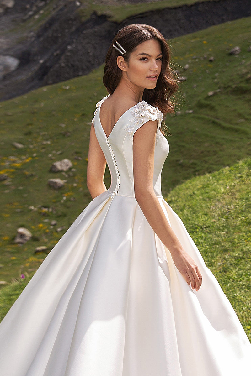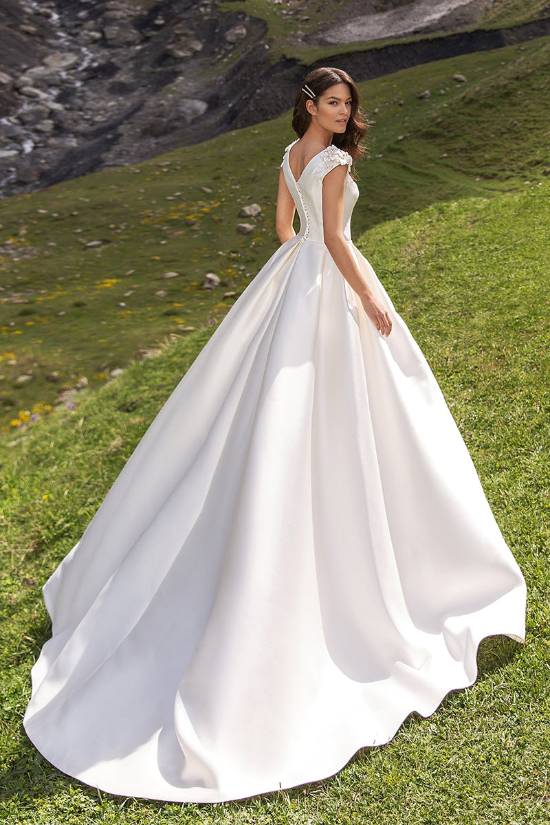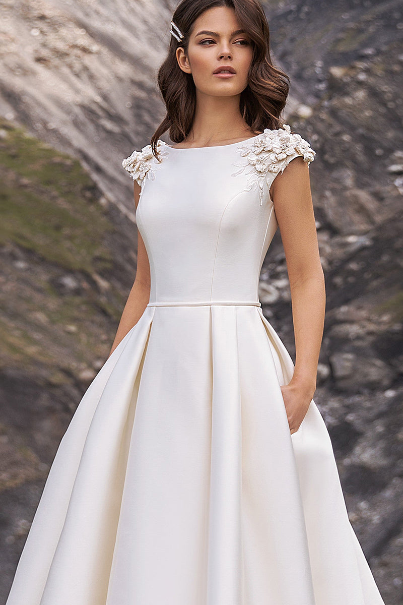 A Line Scoop Cap Sleeves Beads Satin Rustic Wedding Dress with Court Train QW2115 x 1;