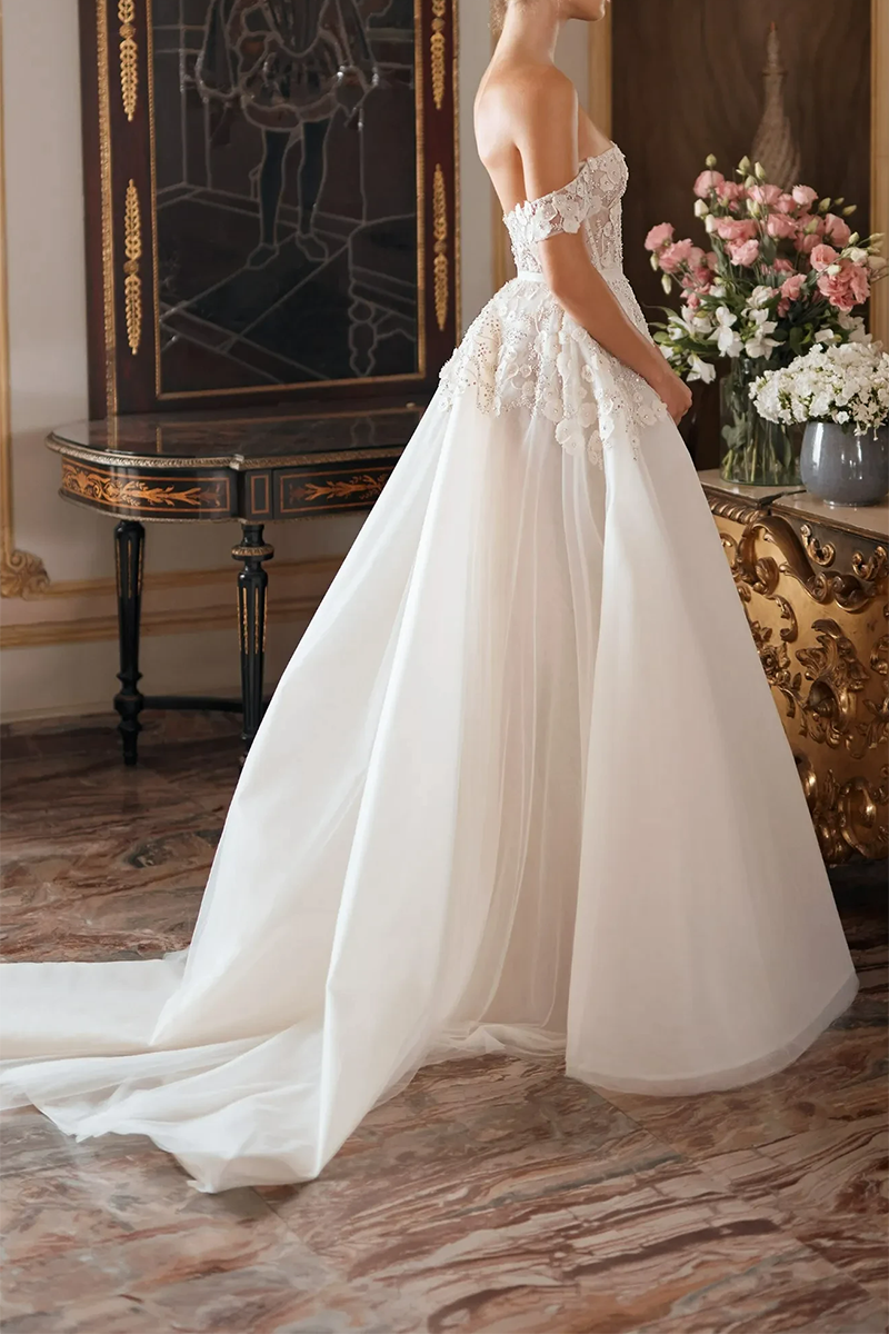 A Line Sweetheart Appliques Rustic Wedding Dress with Court Train QW2284