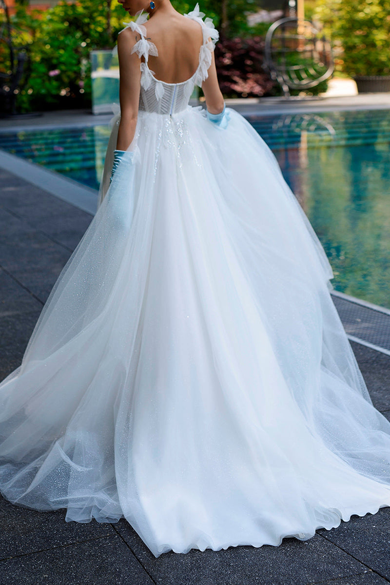 Spaghetti Straps Scoop Beads A line Rustic Wedding Dress