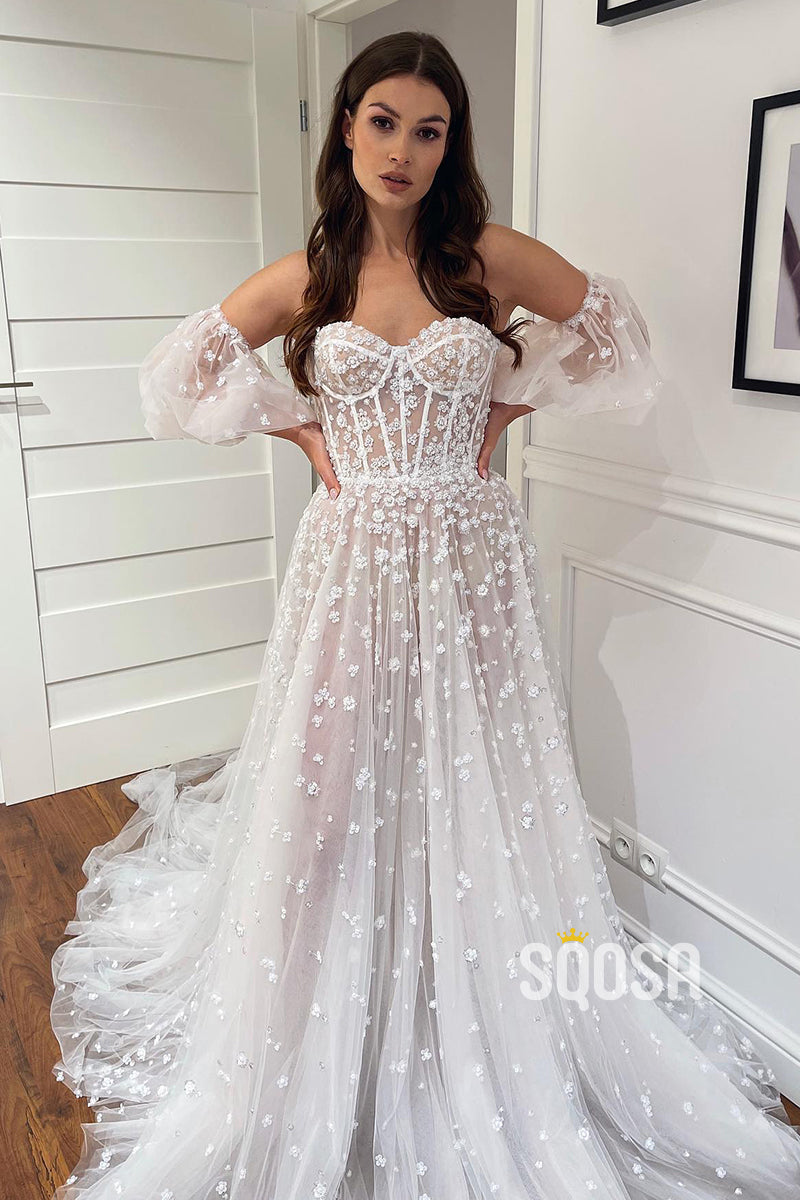 A-line Sweetheart Allover Lace Wedding Dress Bridal Gown QW0912
