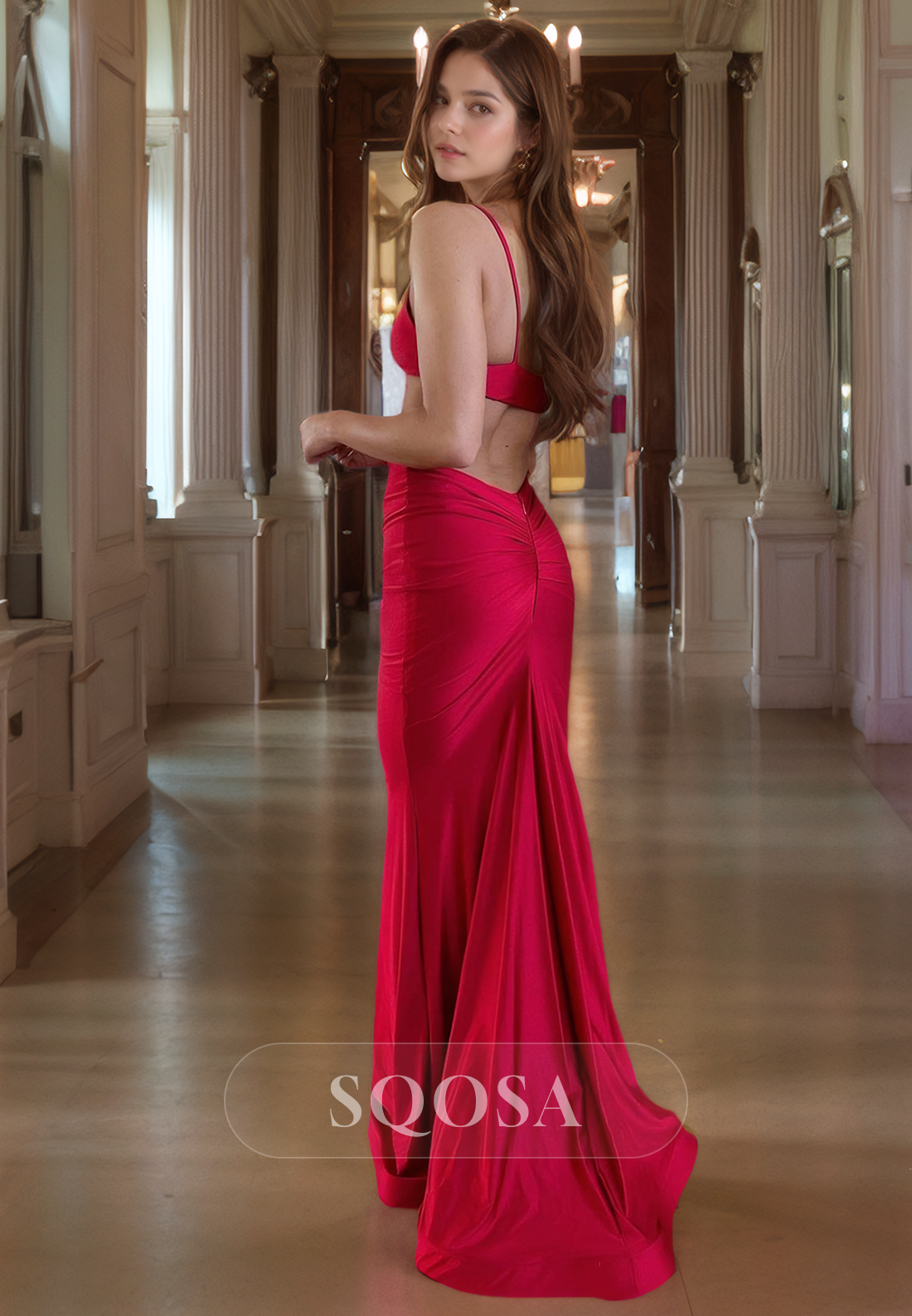 Spaghetti Straps Red Long prom Dress Mermaid Formal Party Dress