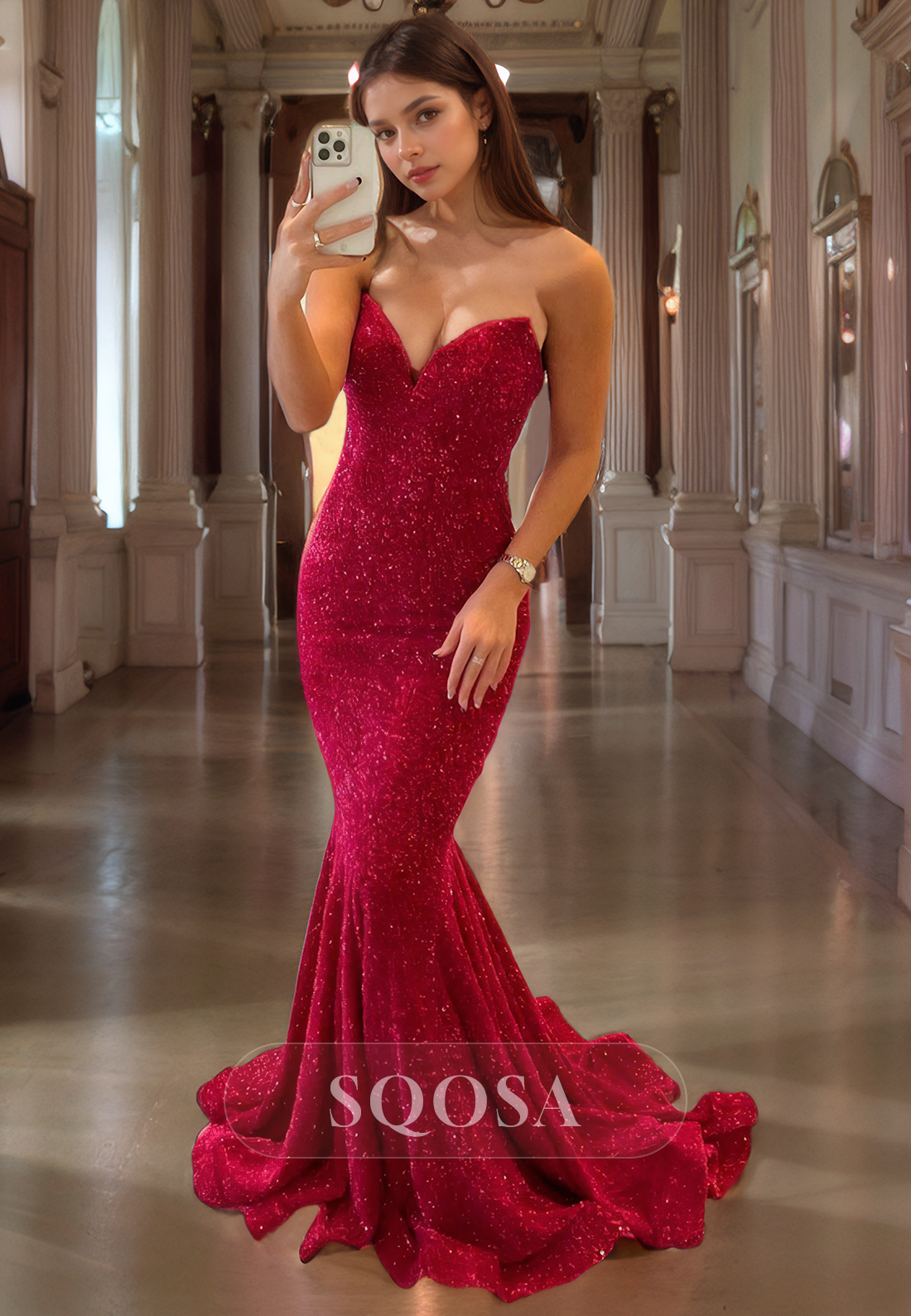 Sexy V Neck Sequins Mermaid Sparkly Prom Dress Long Formal Party Dress