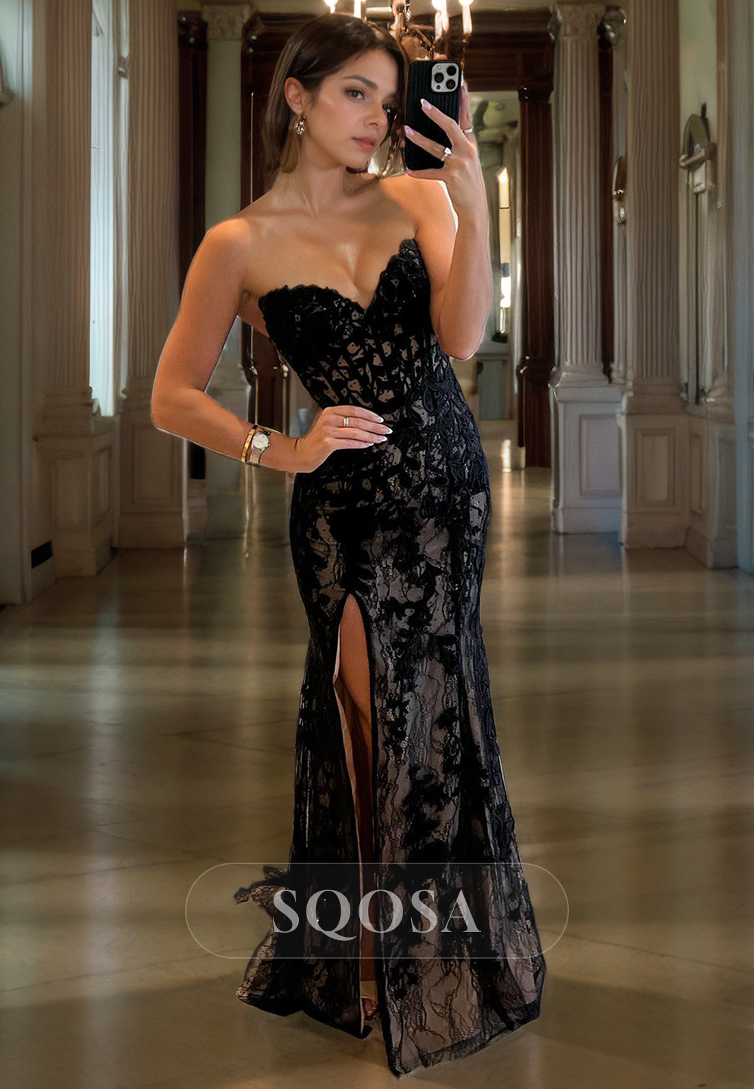 Sheath Sweetheart Lace Appliques Long Prom Dress with Slit Party Gown