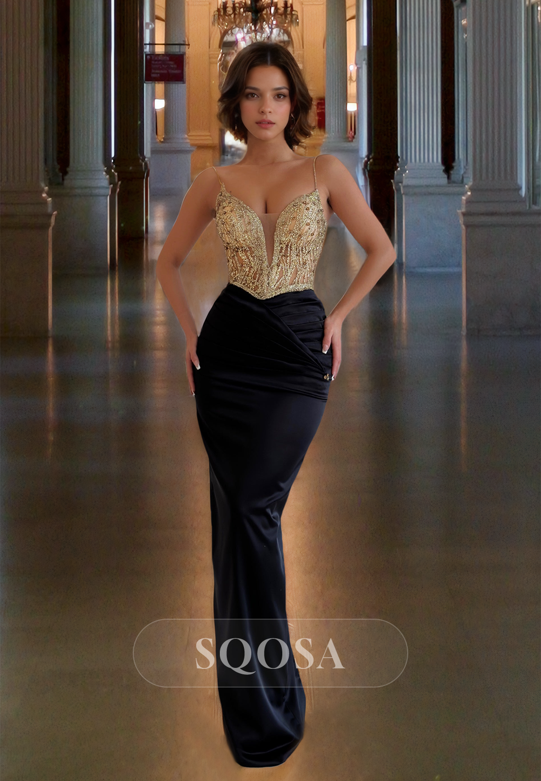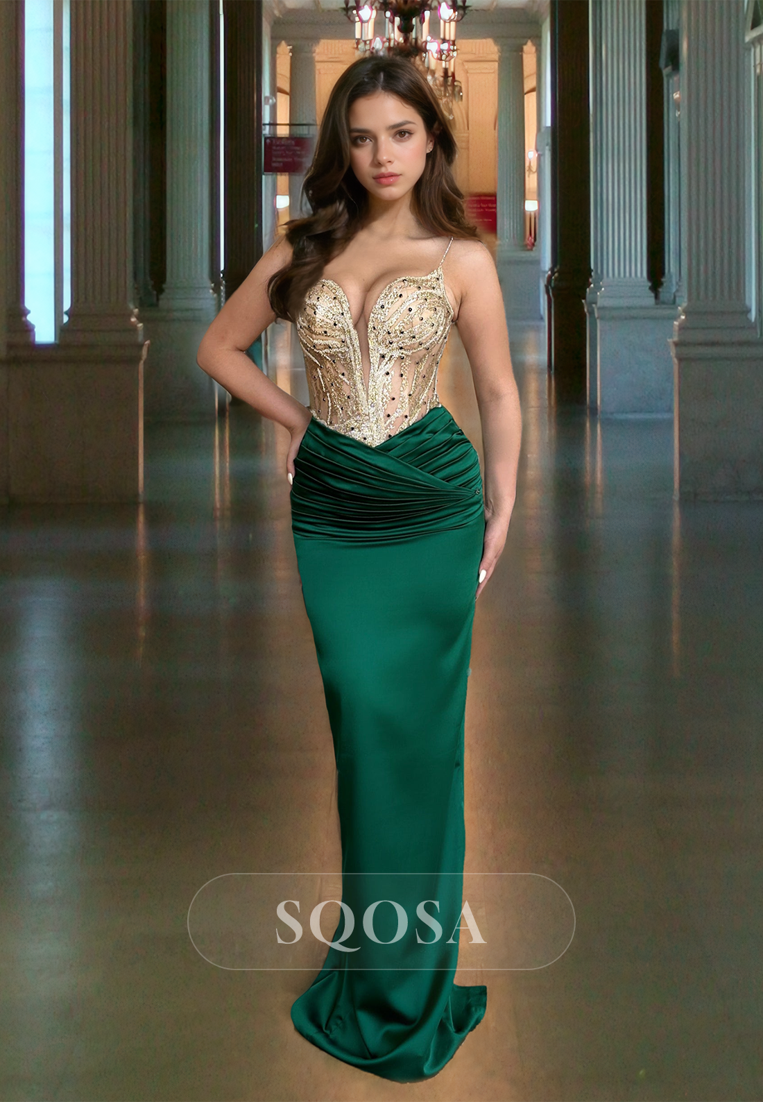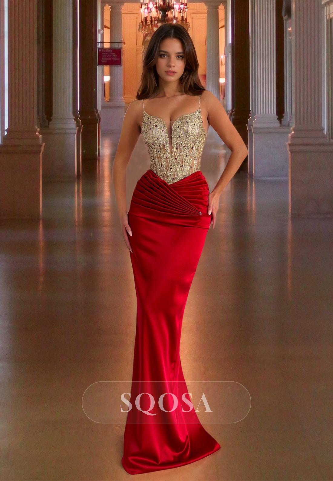 Sweetheart Spaghetti Straps Sleeveless Cutout Mermaid Prom Dress with Beaded and Pleated