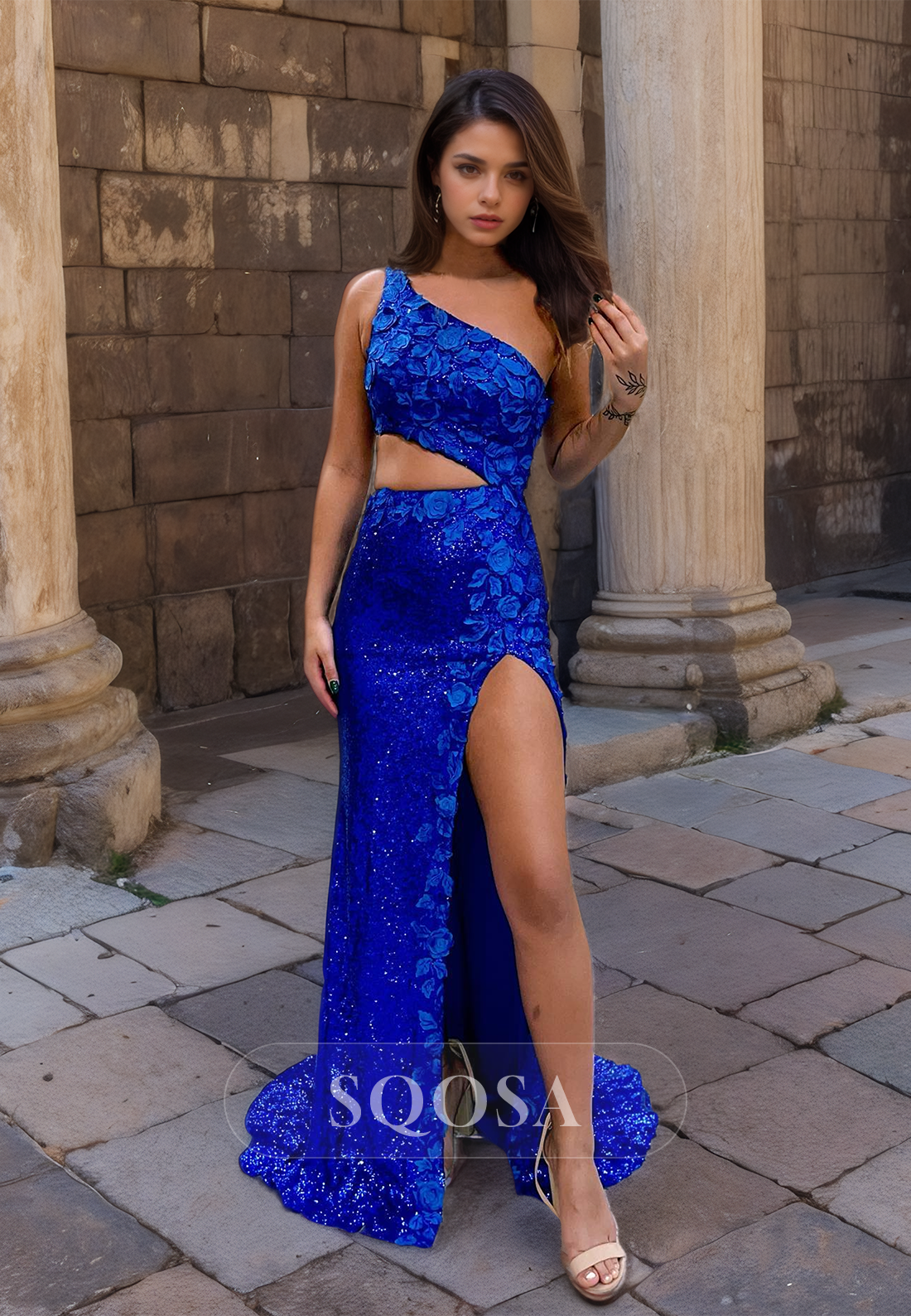 This Asymmetrical Neck Sleeveless Fitted Prom Dress is adorned with intricate beaded sequins and appliques, making it a stunning evening gown option. The asymmetrical neckline adds a unique touch while the fitted silhouette flatters your figure. Perfect for any special occasion, this dress will make you feel confident and elegant.