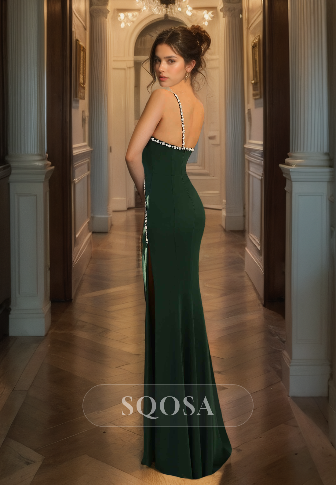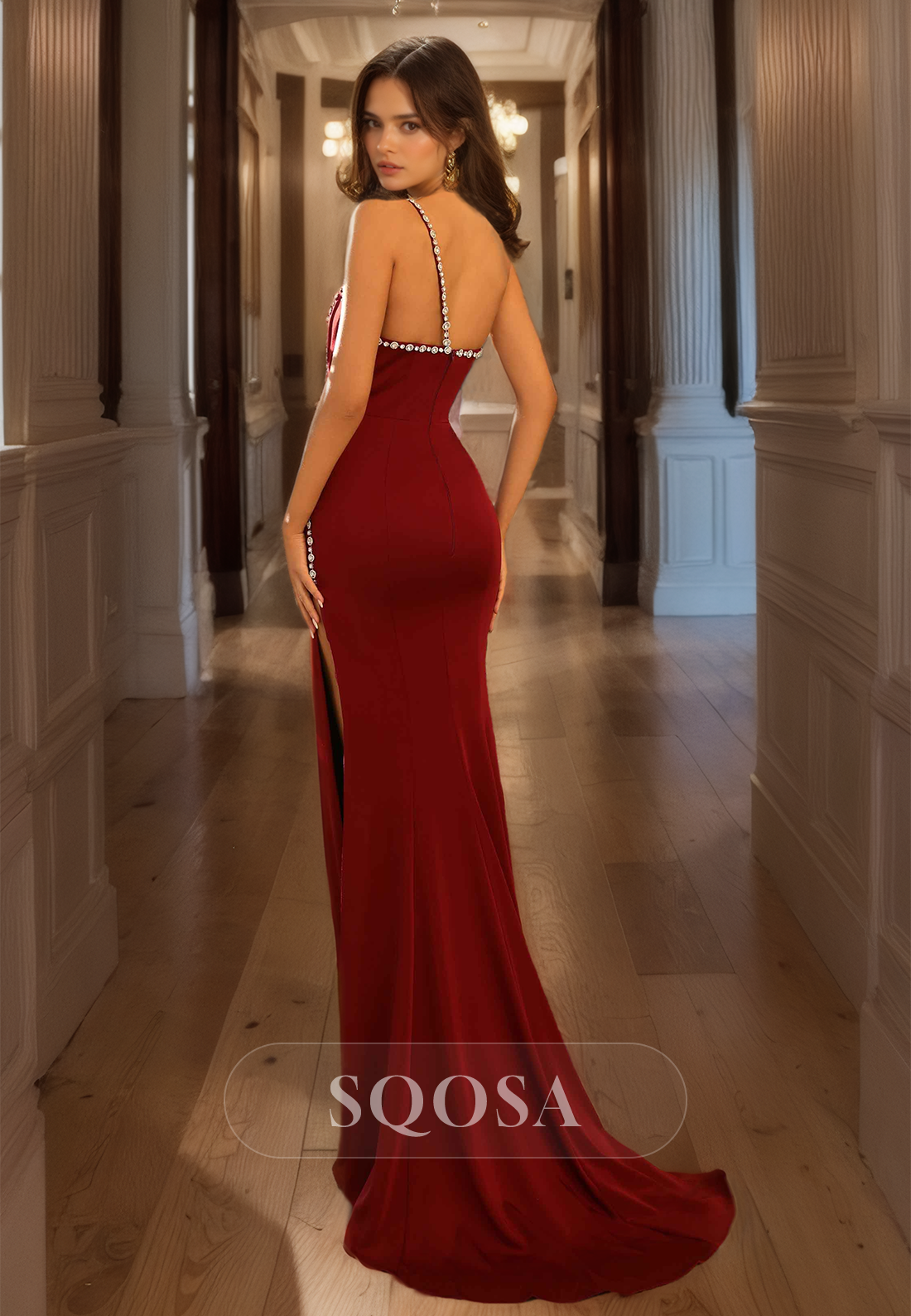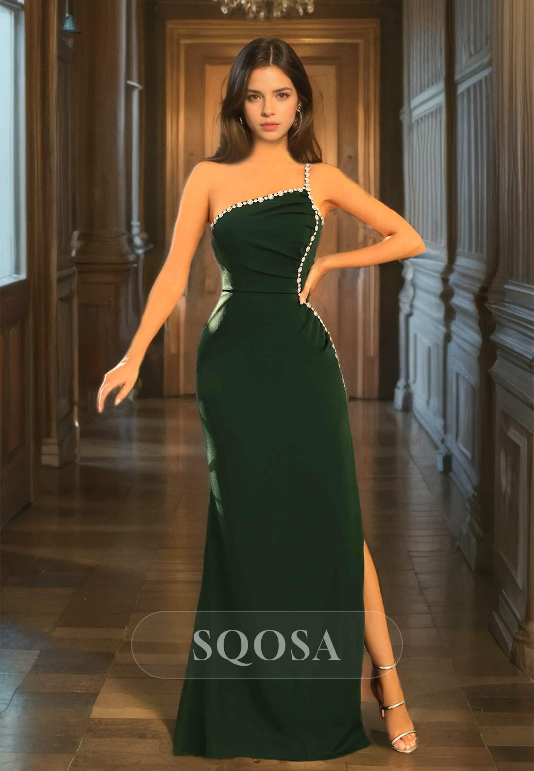 Asymmetrical-Neck One-Strap Sleeveless Pleated Beaded Floor-Length Mermaid Prom Dress