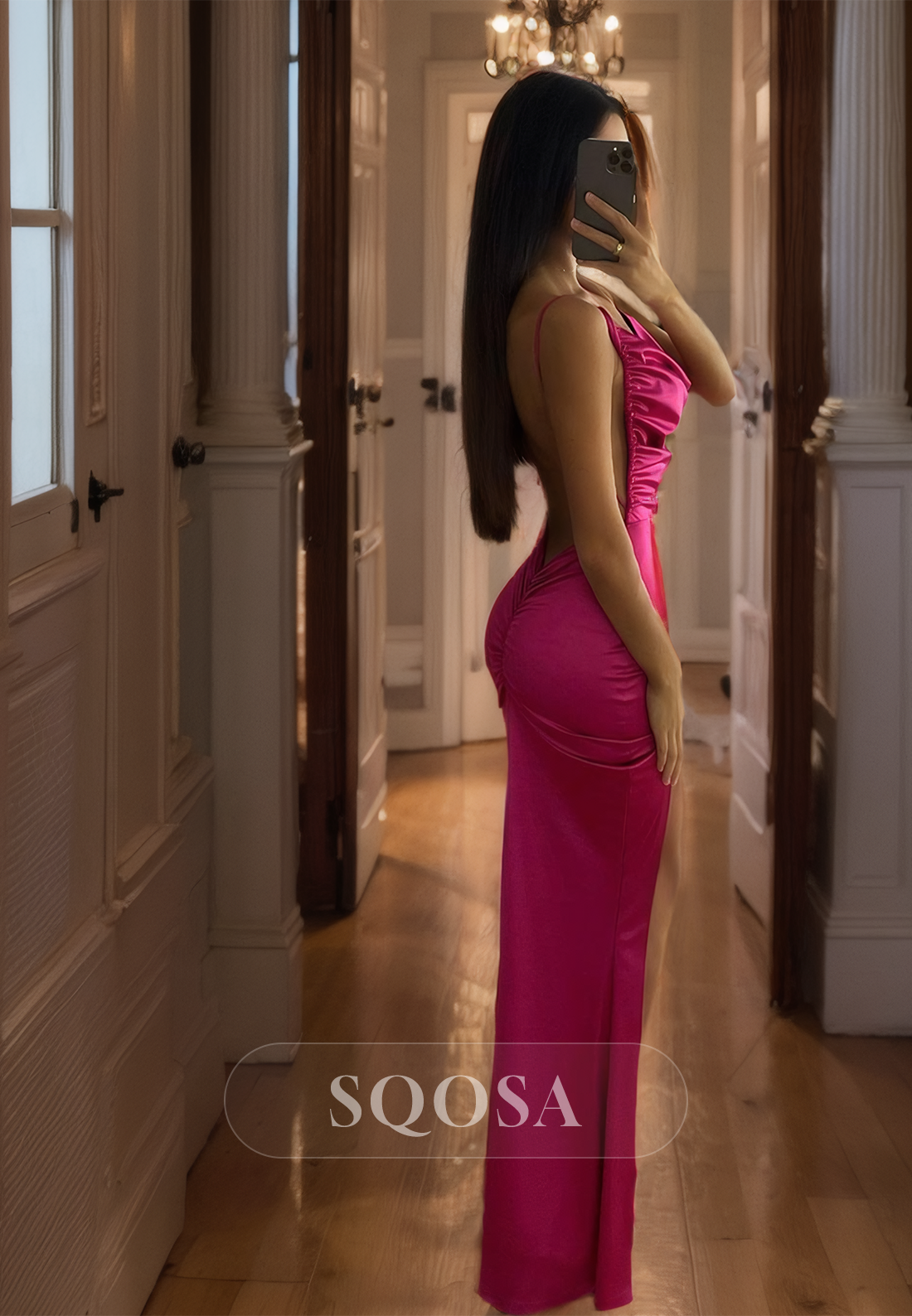 Pleated Scoop-Neck Sleeveless Party Gowns Spaghetti Straps Floor-Length Sweep Train Mermaid Prom Dress x 1;