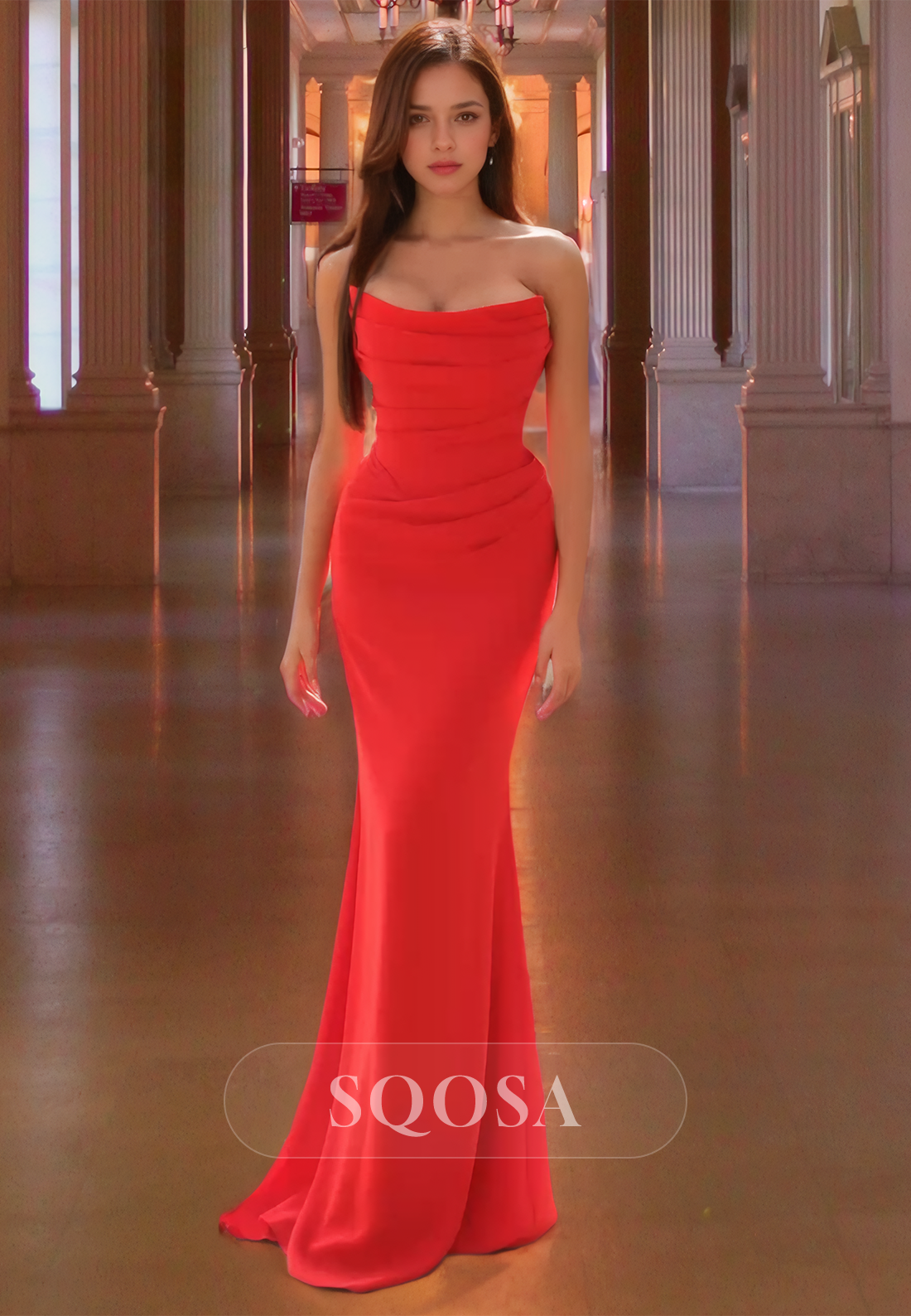 Tube Top Off-Shoulder Satin Mermaid Prom Dress Sleeveless Pleated Floor-Length Evening Gowns