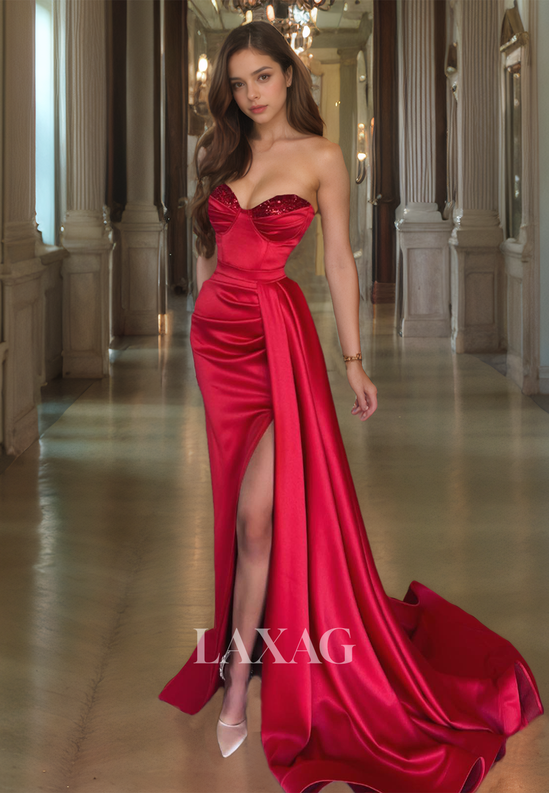 Sequined Sweetheart Sleeveless Evening Gowns Off-Shoulder Pleated Mermaid Prom Dress with Sweep Train x 1;