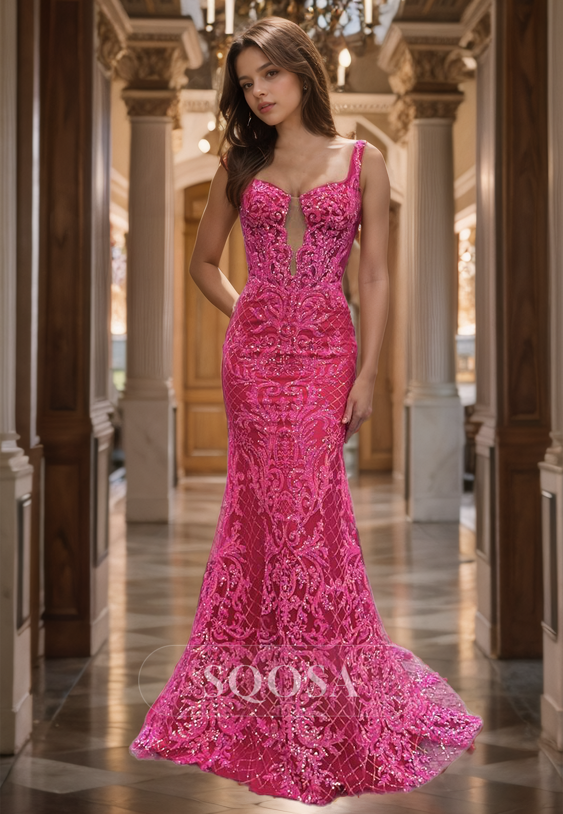 Allover Lace Beaded Sweetheart Sleeveless Evening Gowns Spaghetti Straps Pleated Mermaid Prom Dress
