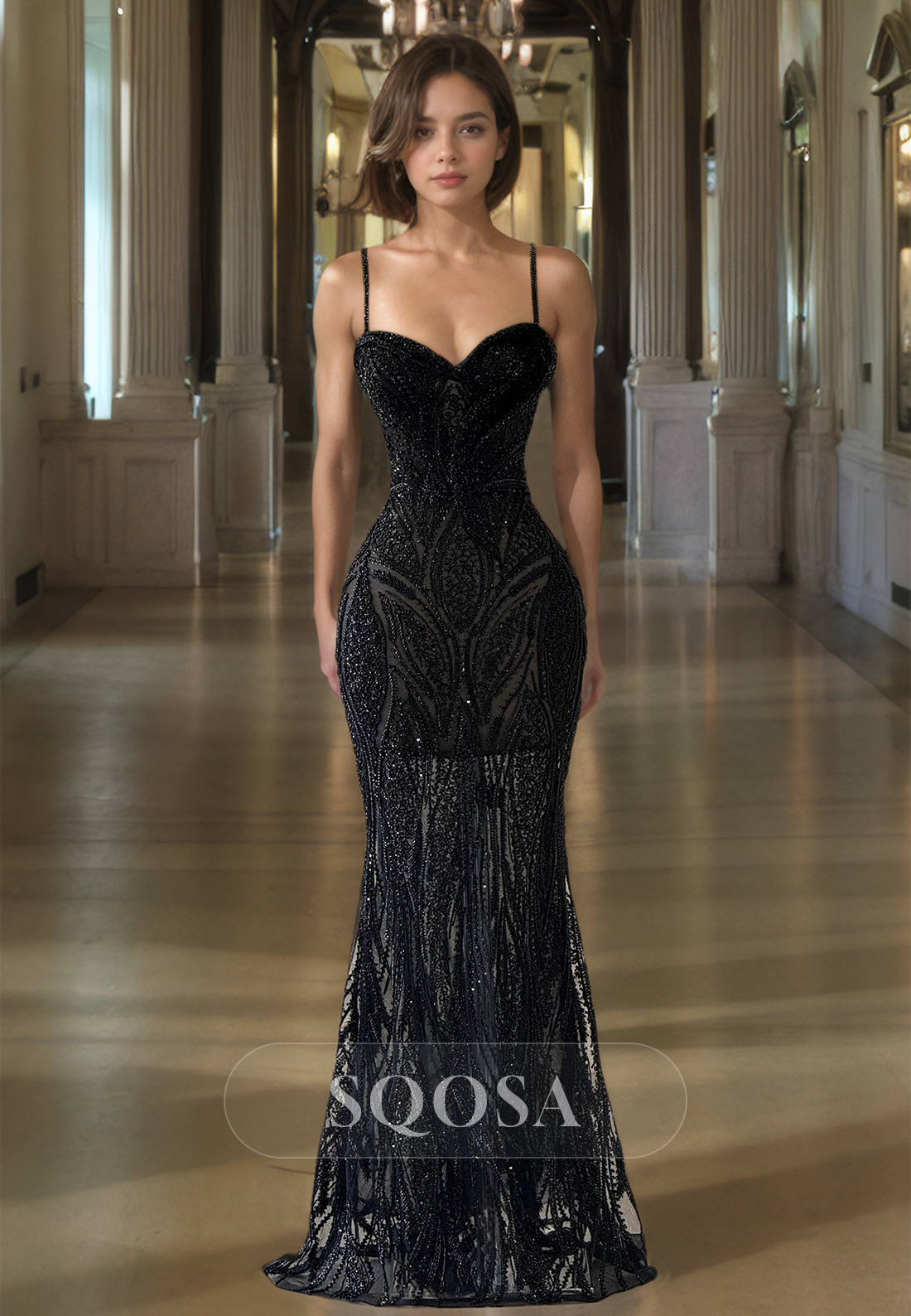 Spaghetti Straps Sweetheart Sleeveless Formal Gowns Beaded Sequined Floor-Length Mermaid Prom Dress