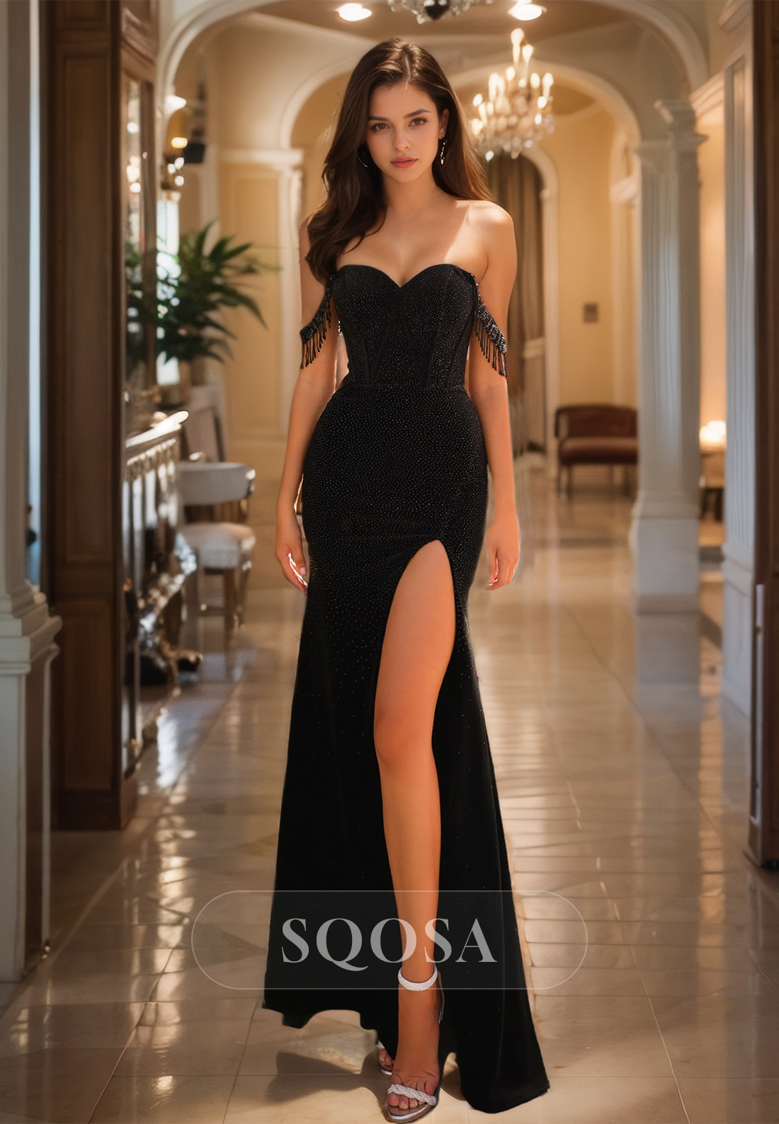 Fully Beaded Sweetheart Strapless Mermaid Evening Gowns Sleeveless Floor-Length Prom Dress