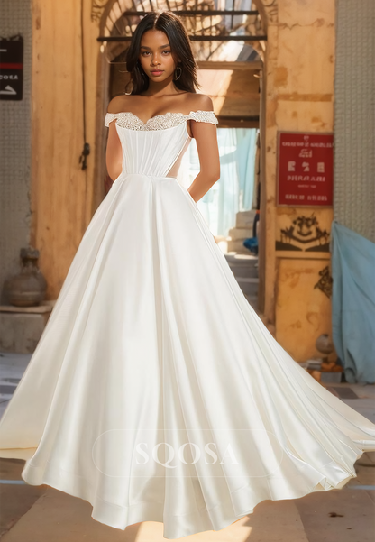 Sleeveless Beaded Sweetheart A-Line Dinner Gowns Pleated Floor-Length Formal Prom Dress
